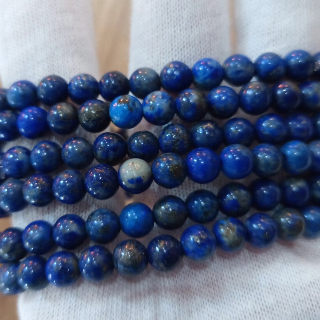 Bracelet monté sur fil silicone extensible, perles diamètre 6 mm, fil diamètre 0,6 mm en perles de Lapis lazuli.