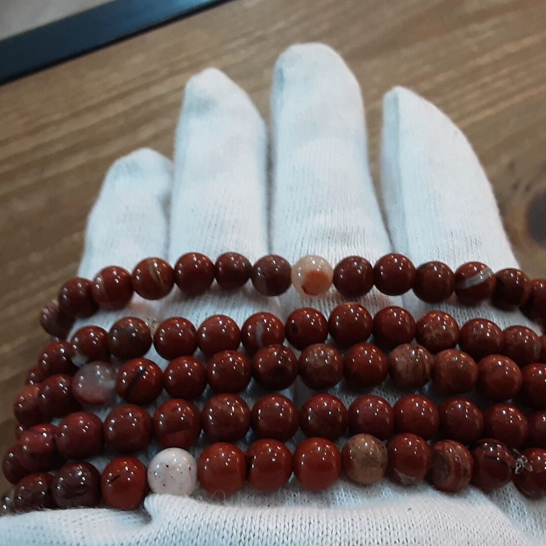 Bracelet monté sur fil silicone extensible, perles diamètre 6 mm, fil diamètre 0,6 mm en Jaspe rouge naturel.