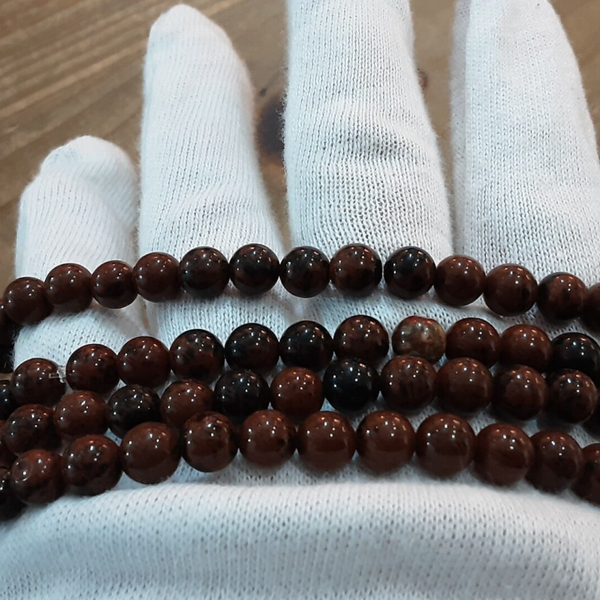 Bracelet monté sur fil silicone extensible, perles diamètre 6 mm, fil diamètre 0,6 mm en Obsidienne acajou ou Obsidienne mahogany.