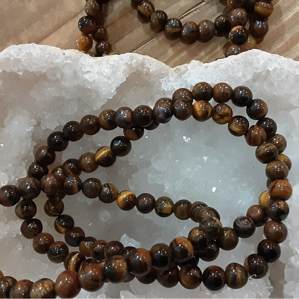 Bracelet monté sur fil silicone extensible, perles diamètre 6 mm, fil diamètre 0,6 mm en Oeil de tigre.