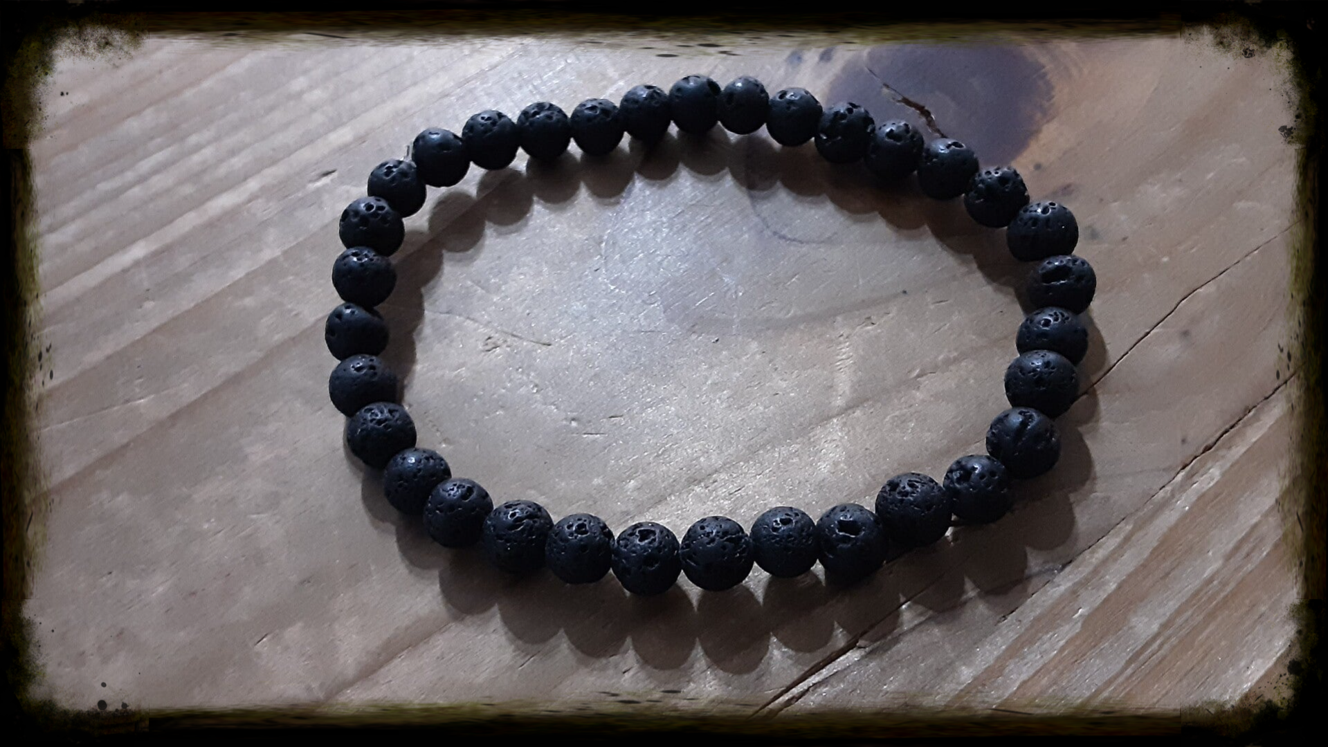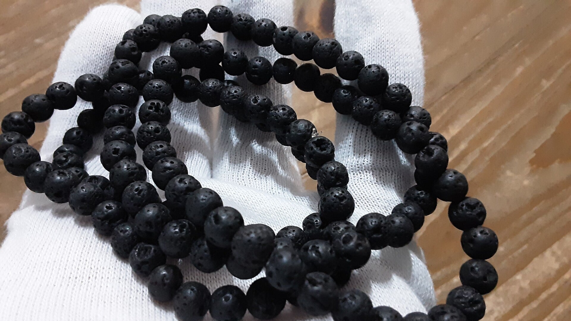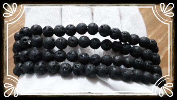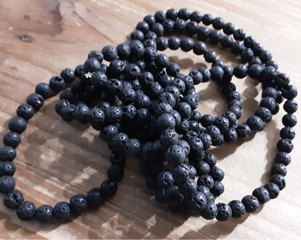 Bracelet monté sur fil silicone extensible, perles diamètre +/- 6 mm, fil diamètre 0,6 mm en perles de Pierre de lave naturelle.