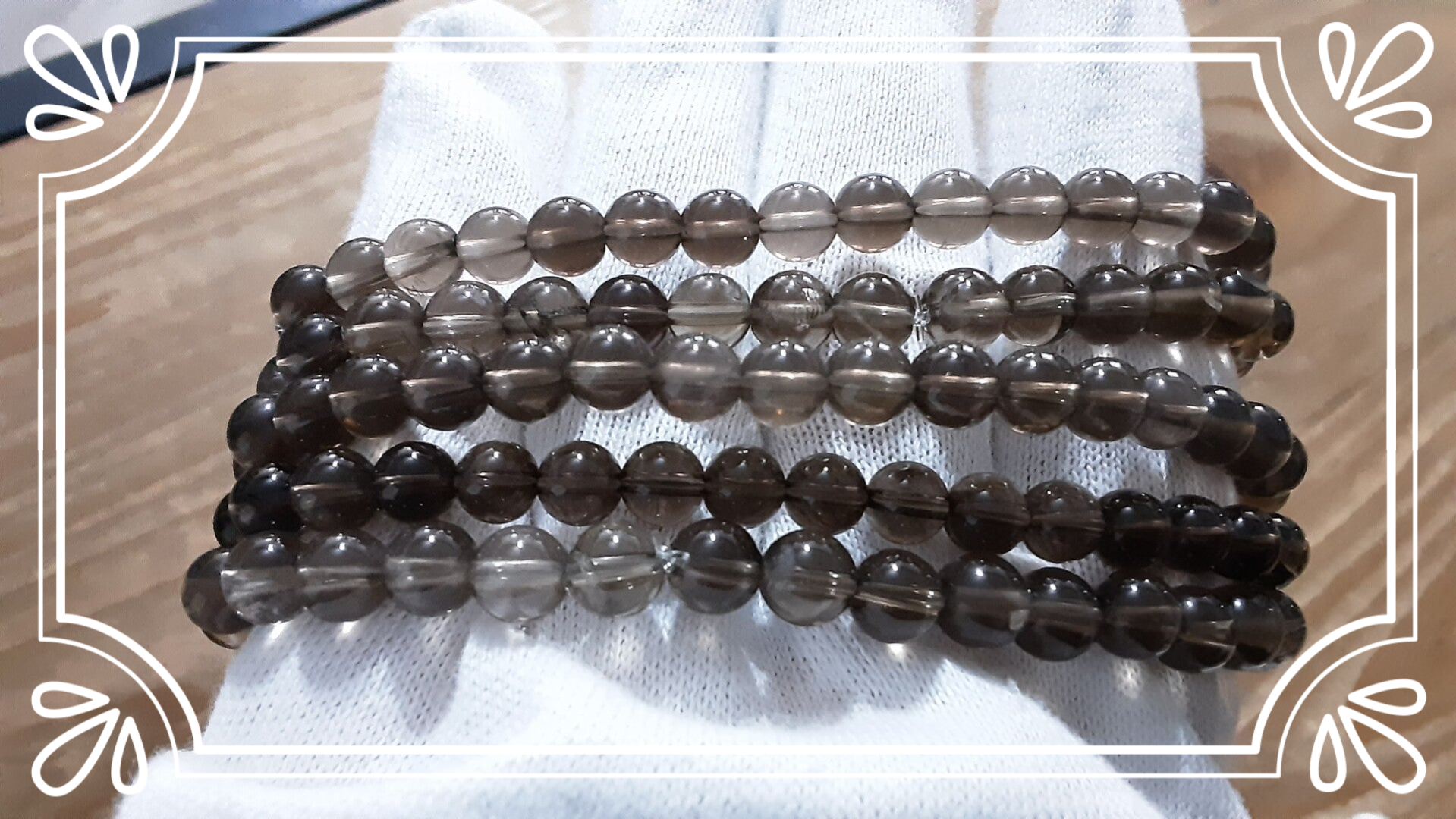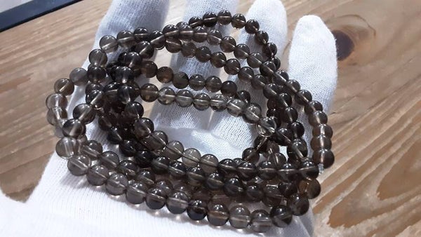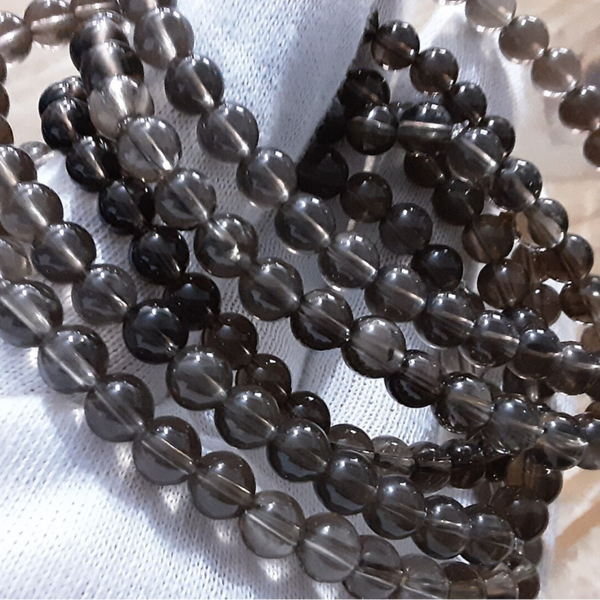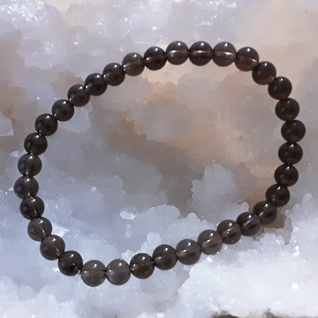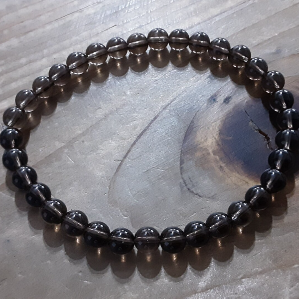 Bracelet monté sur fil silicone extensible, perles diamètre 6 mm, fil diamètre 0,6 mm en Quartz fumé.