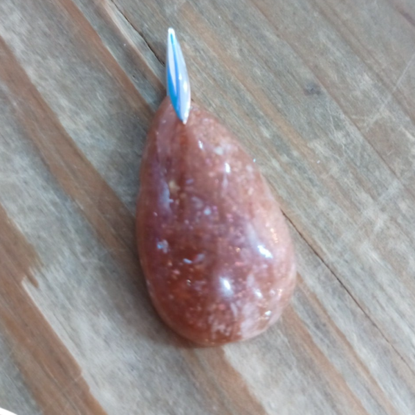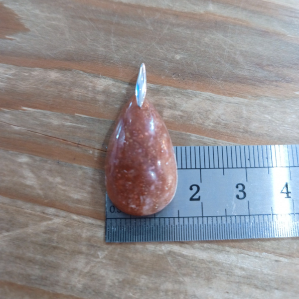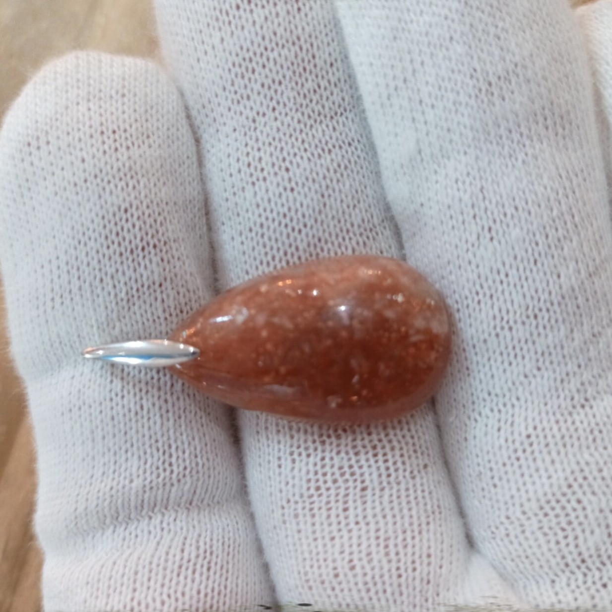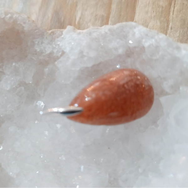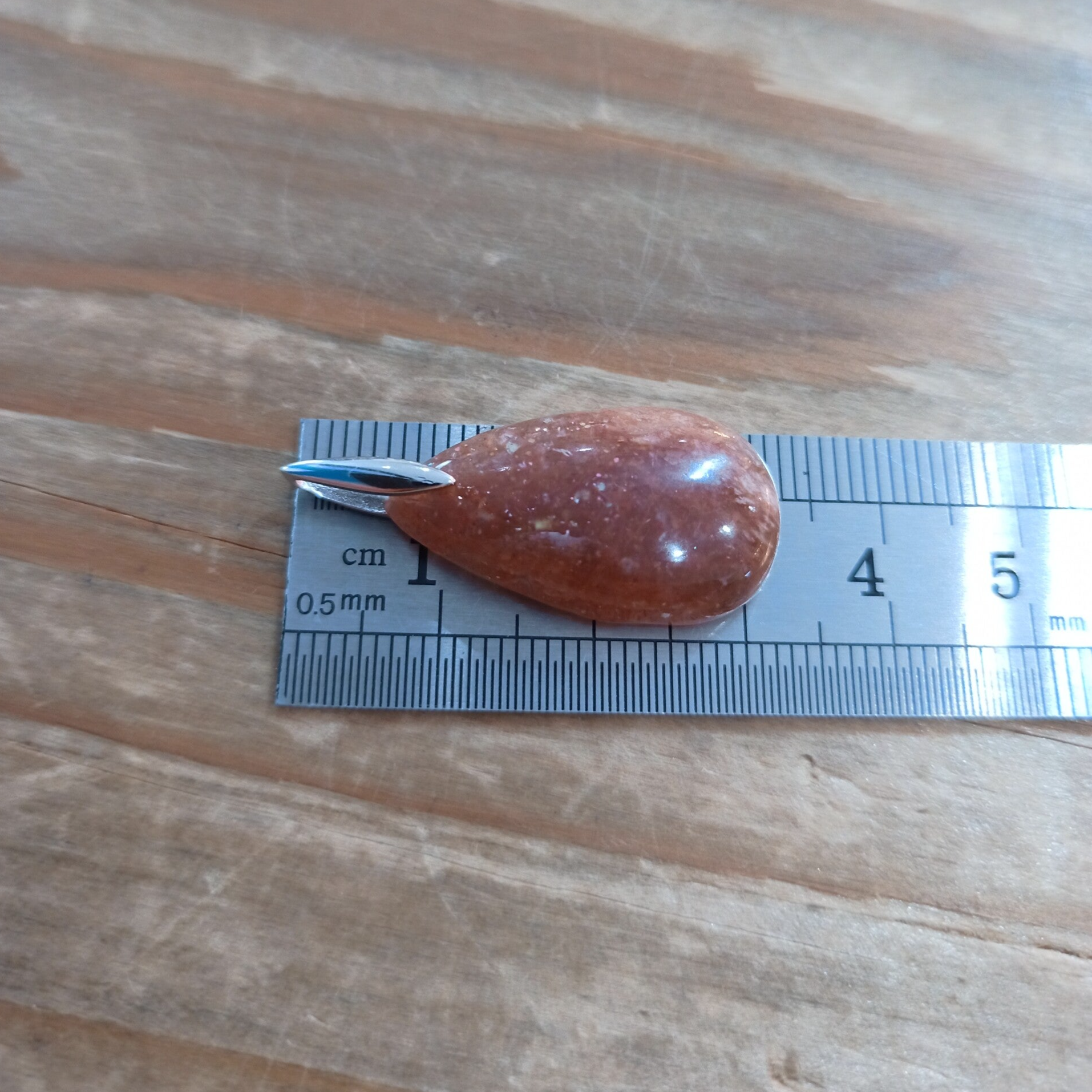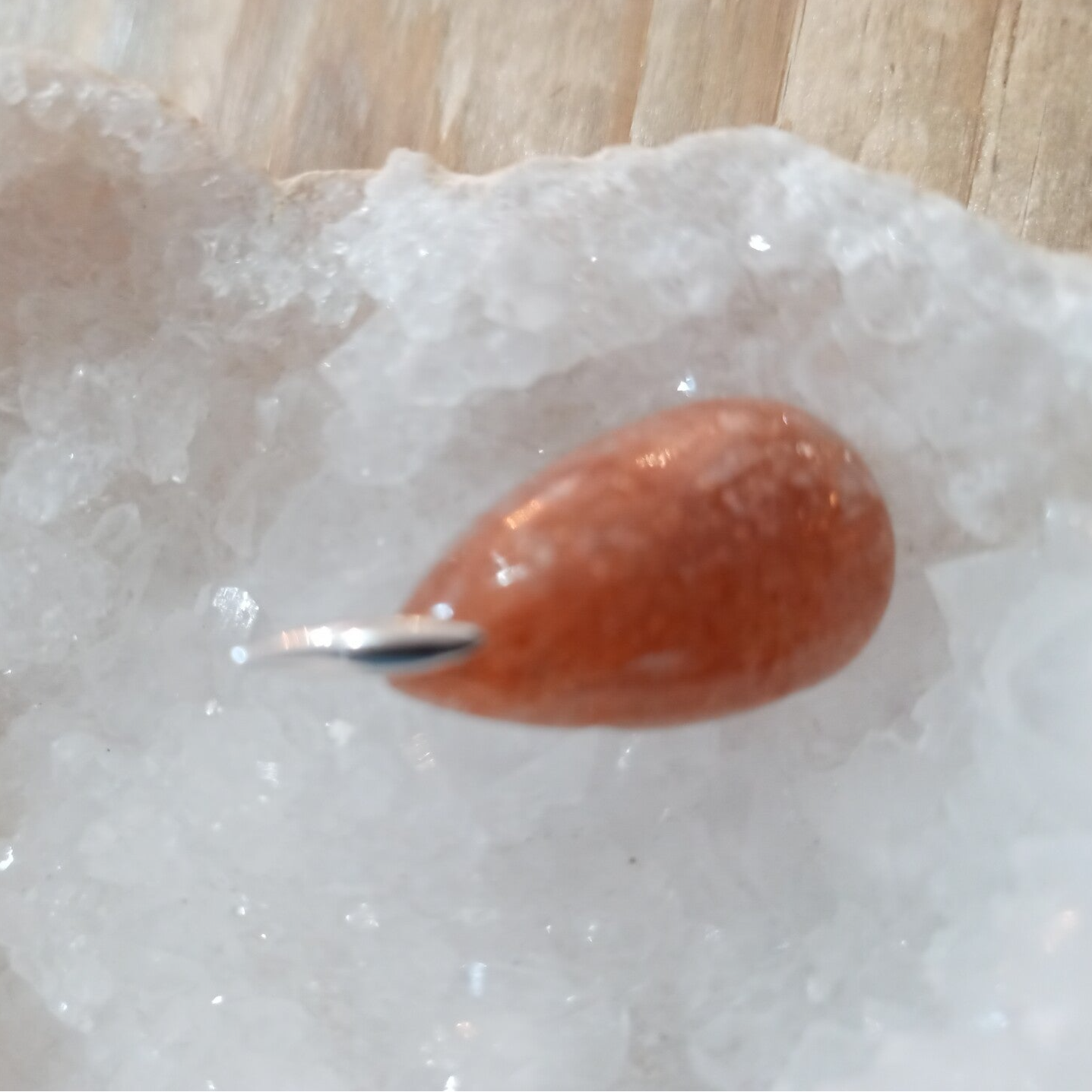 Pendentif en Pierre de Soleil et Argent 925/1000. Il est composé d'un cabochon en de forme goutte en Pierre de Soleil et d'une bélière en Argent 925/1000.