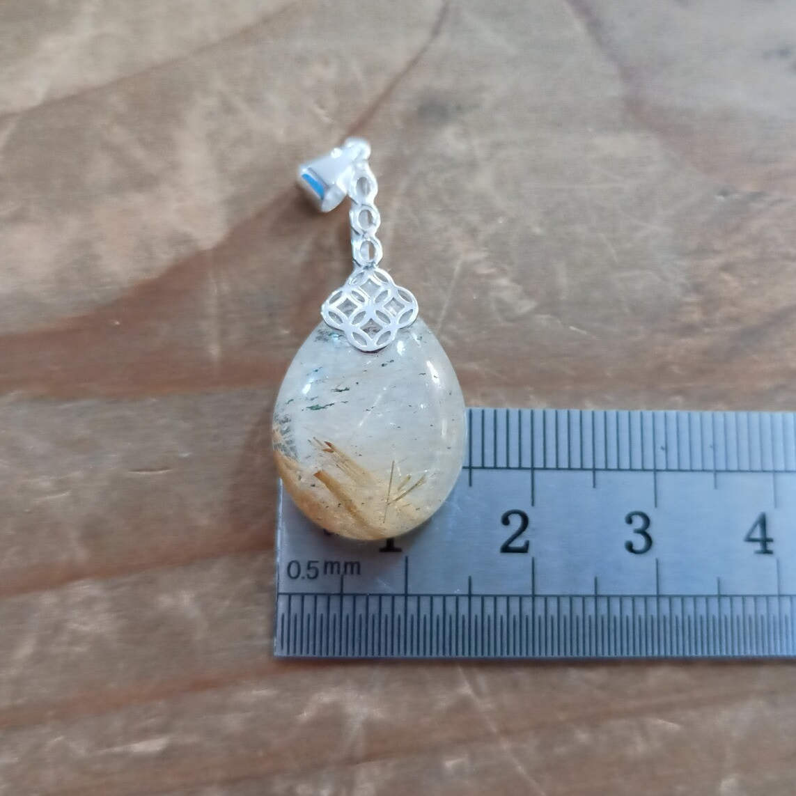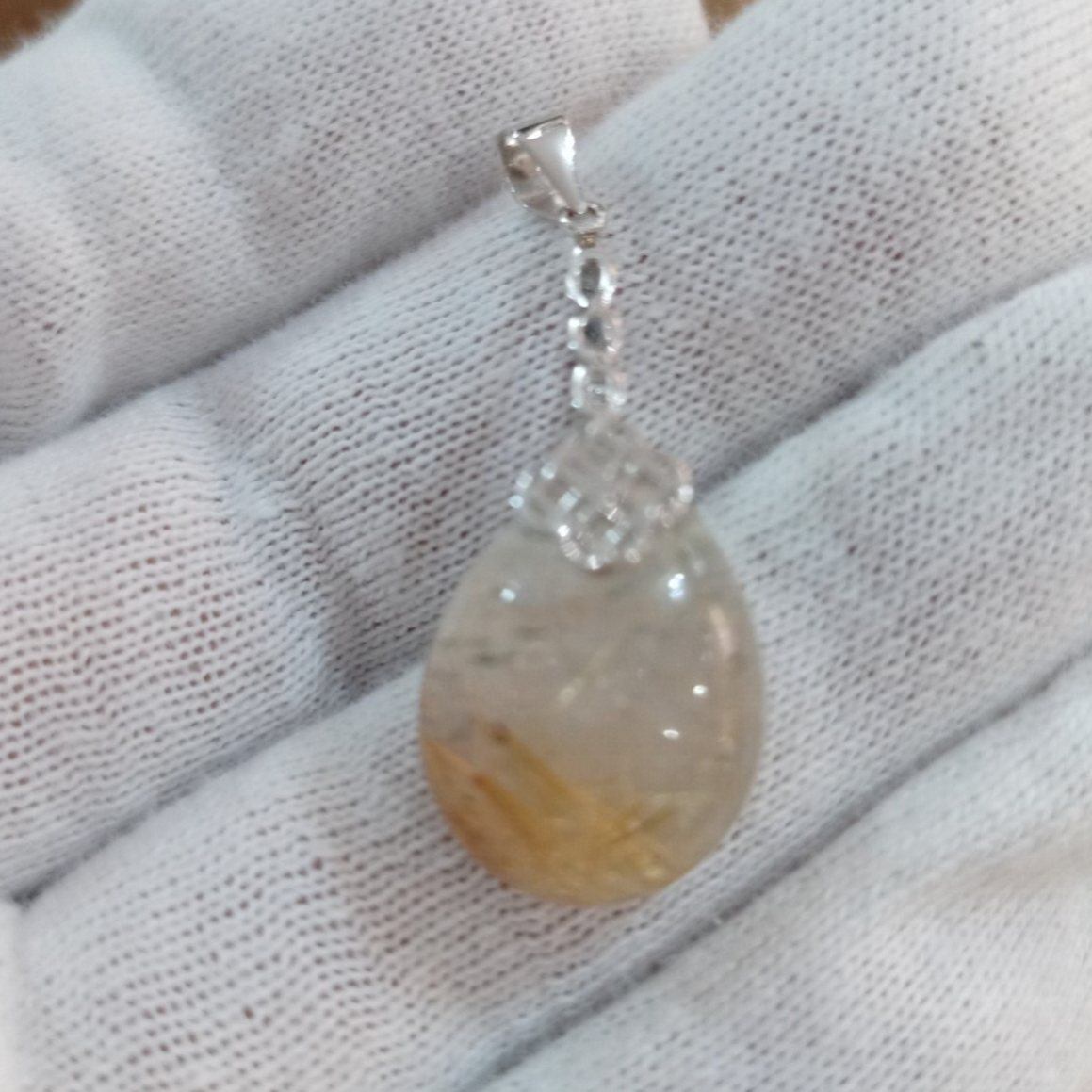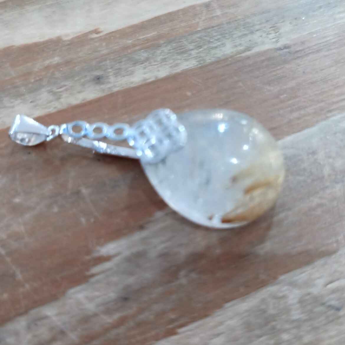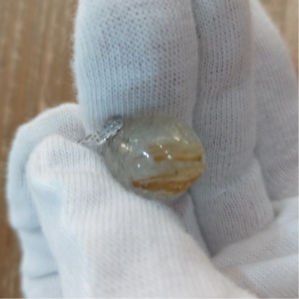 Pendentif en Quartz rutile doré et Argent 925/1000. Il est composé d'un cabochon en Quartz rutile doré et bélière en Argent 925/1000.
