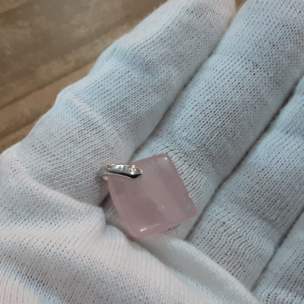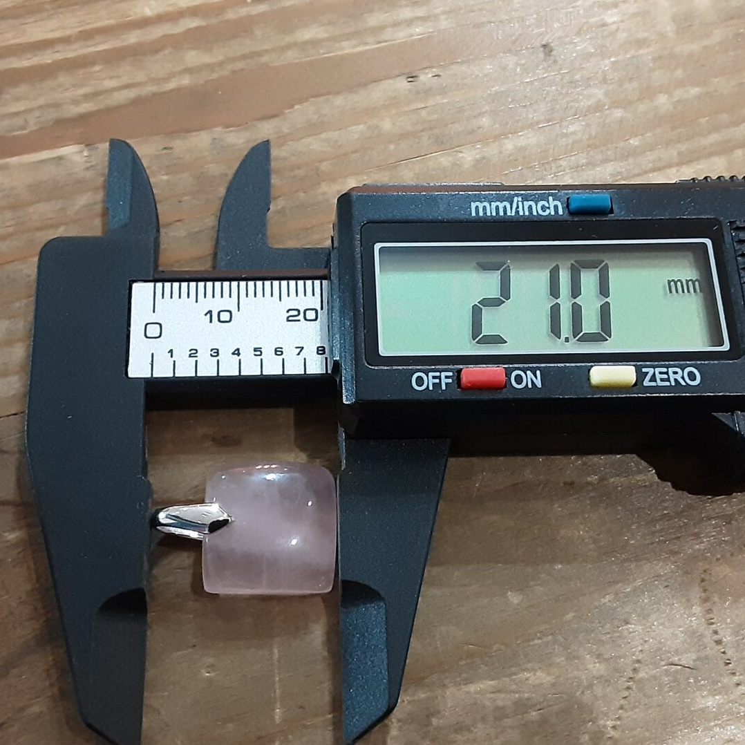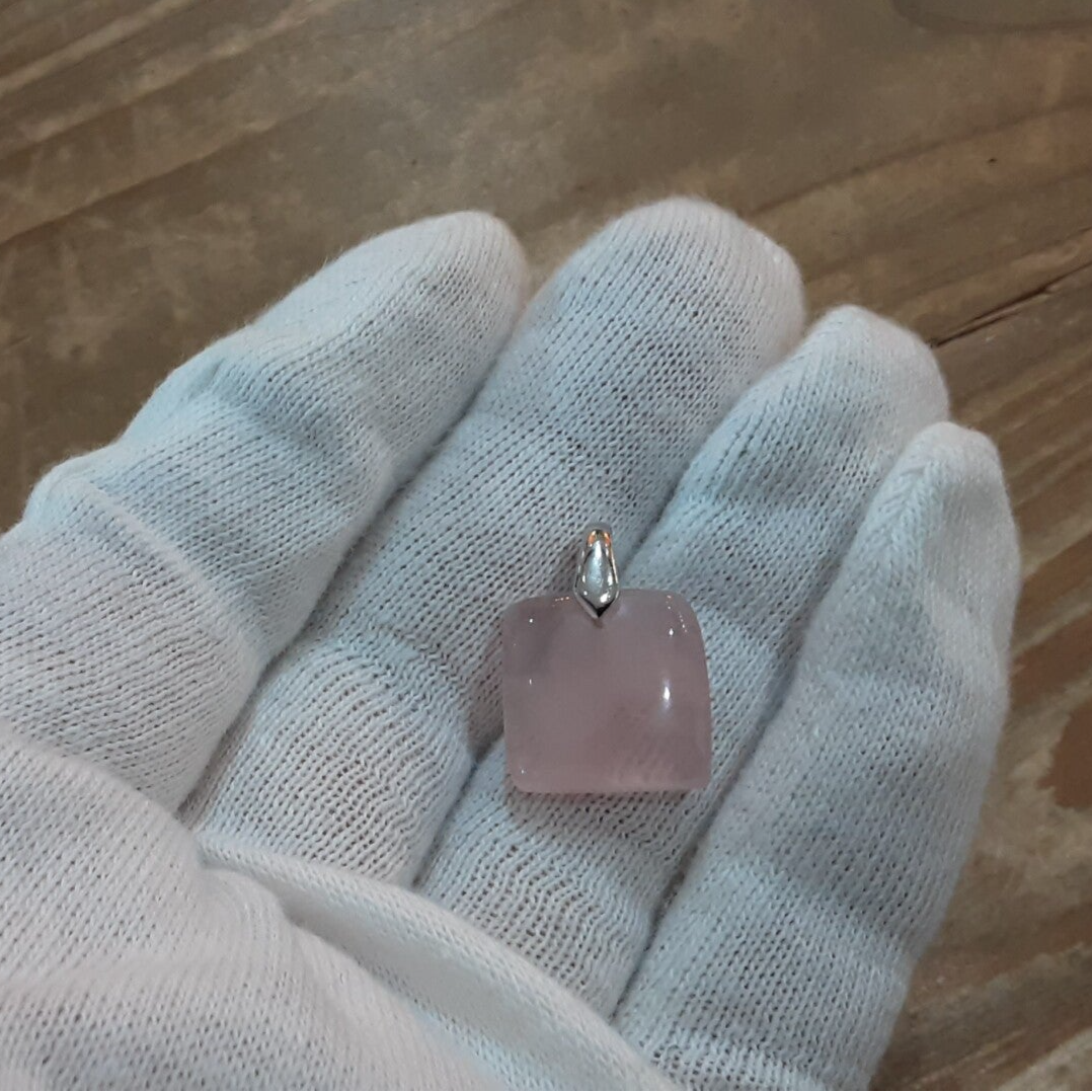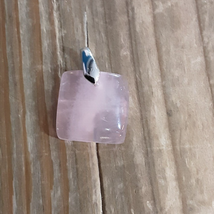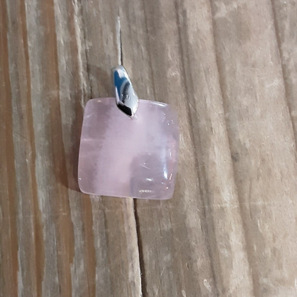 Pendentif en Quartz rose et Argent 925/1000. Il est composé d’un cabochon carré en Quartz rose et d’une bélière en Argent 925/1000.