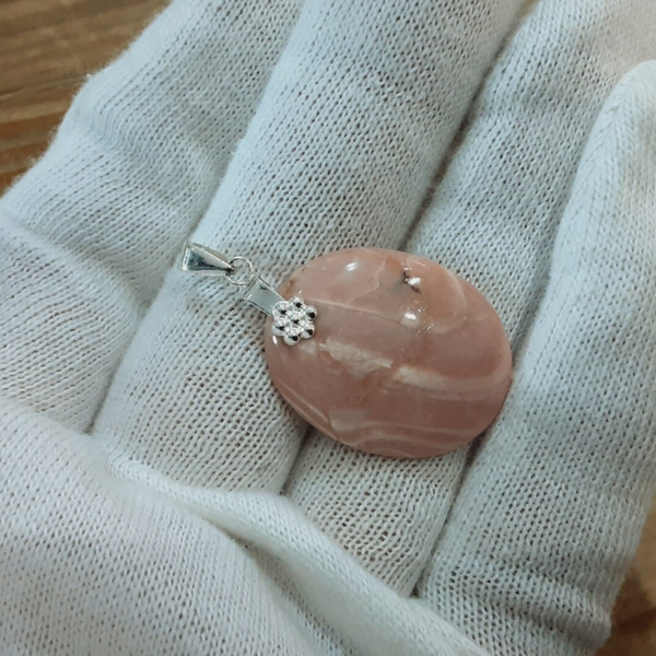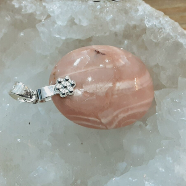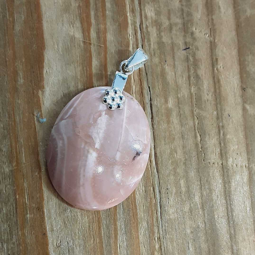 Pendentif en Opale des Andes et Argent 925/1000. Il est composé d'un cabochon ovale d'Opale des Andes rose et d'une bélière en Argent 925/1000.