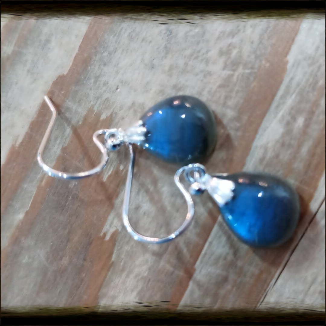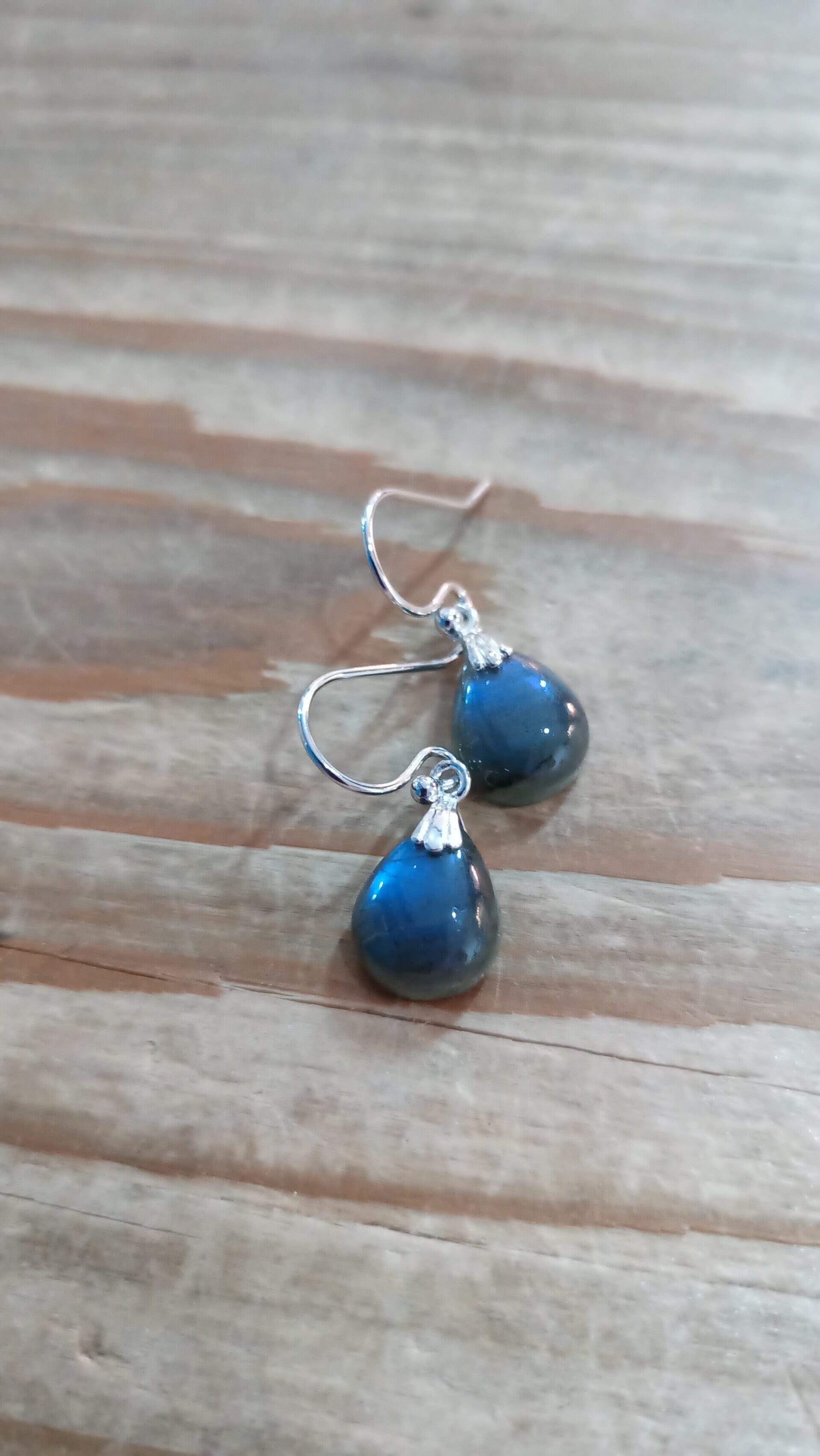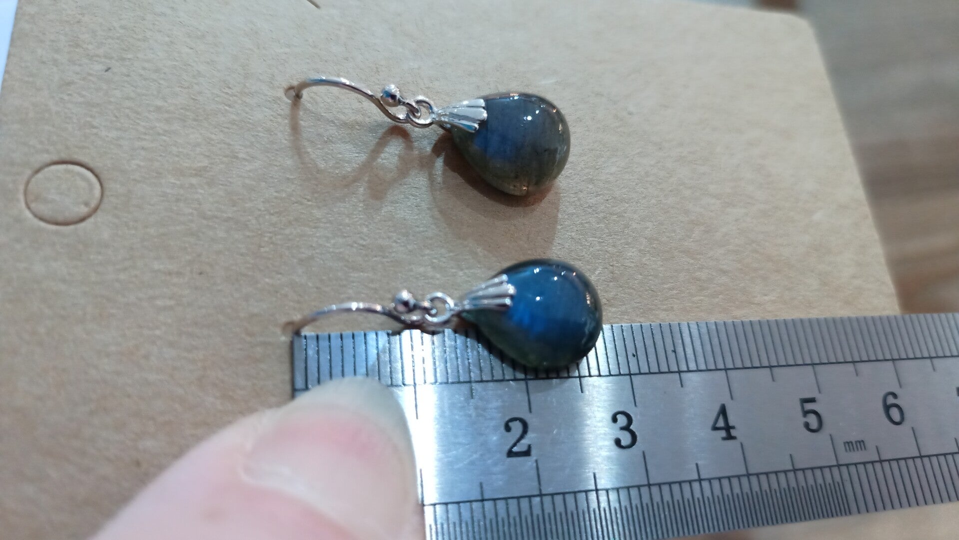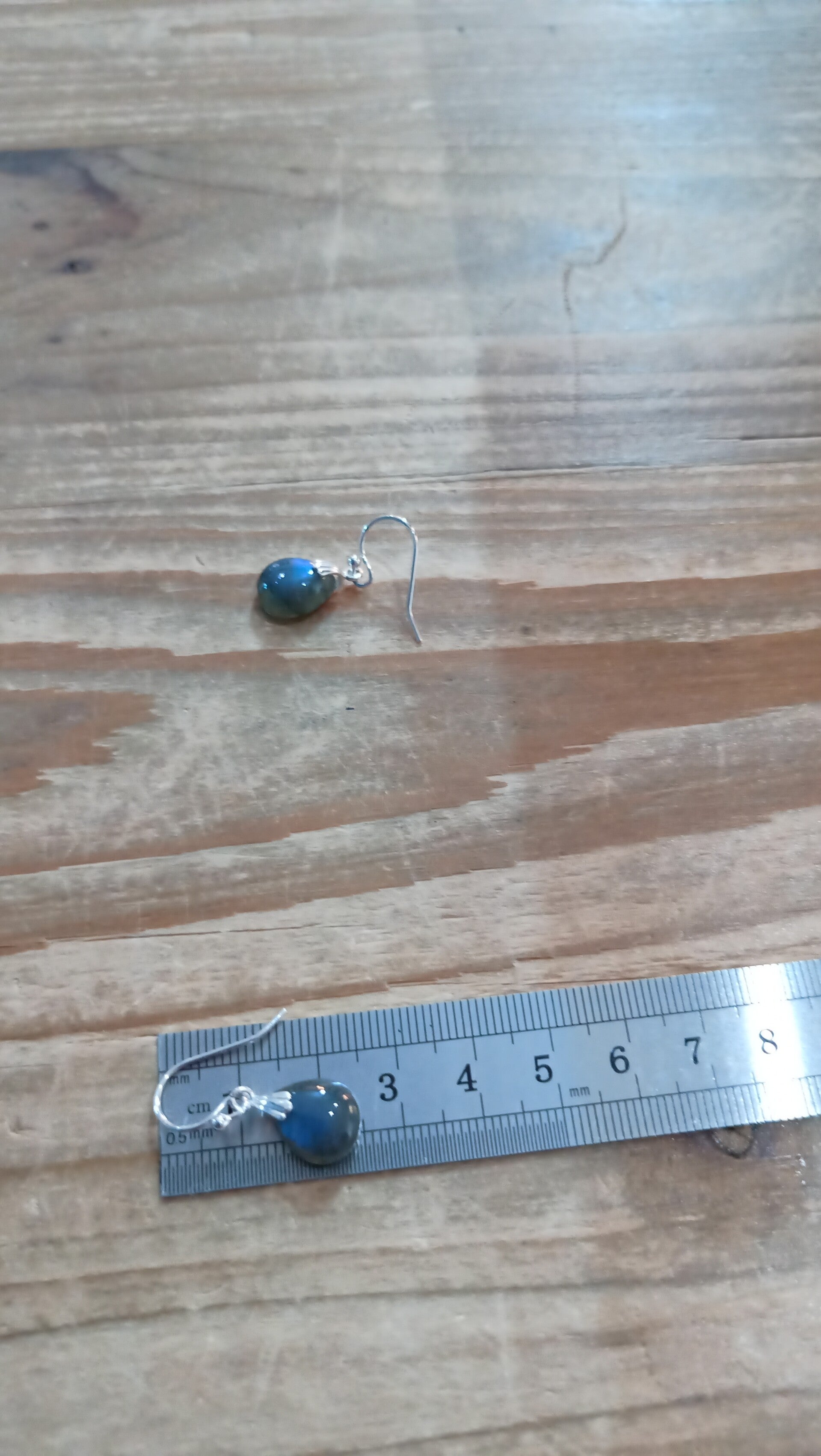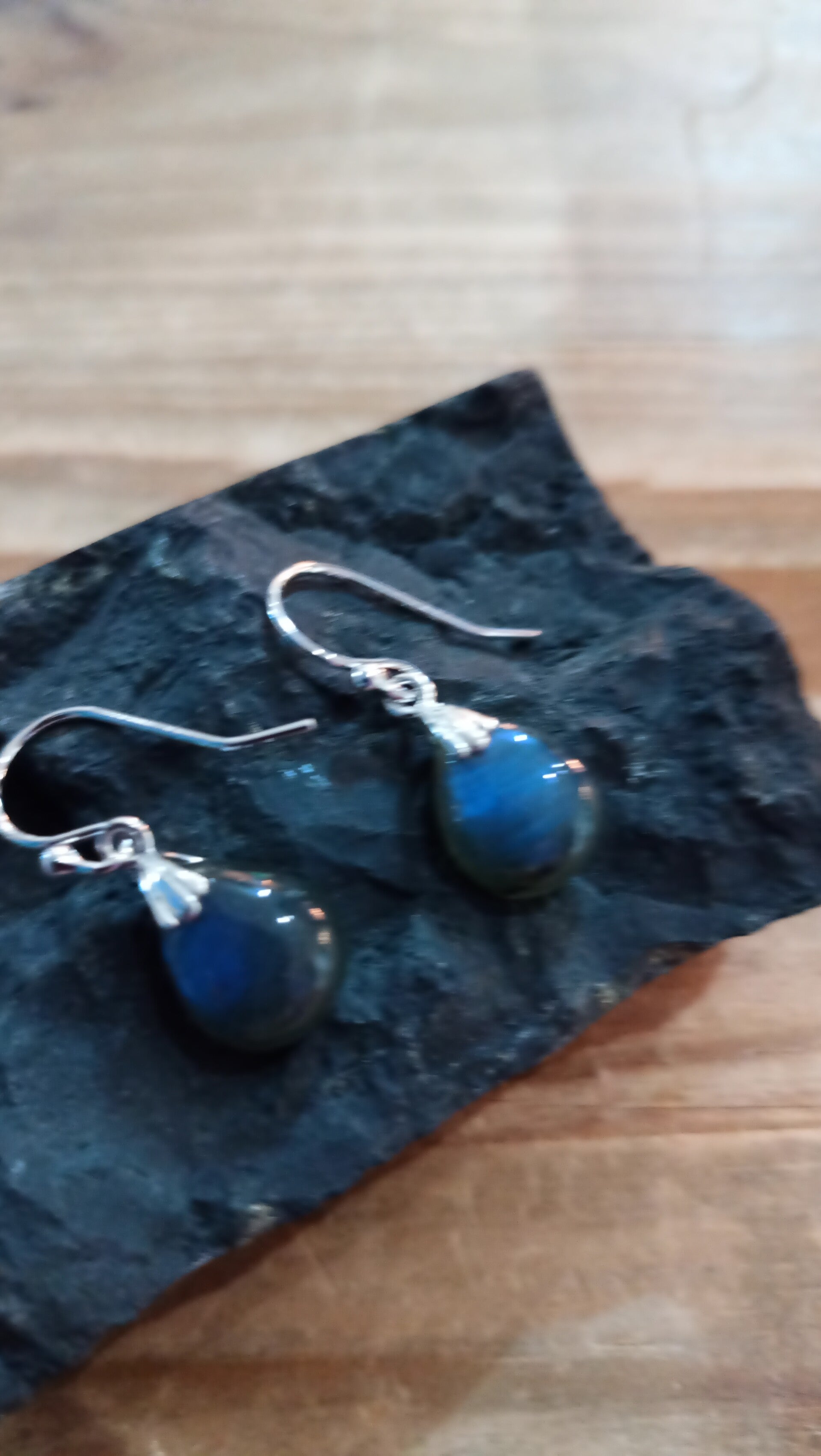 Création artisanale par Bijoux Que Gemmes. Boucles d'oreilles en Labradorite bleue naturelle et Argent 925/1000.