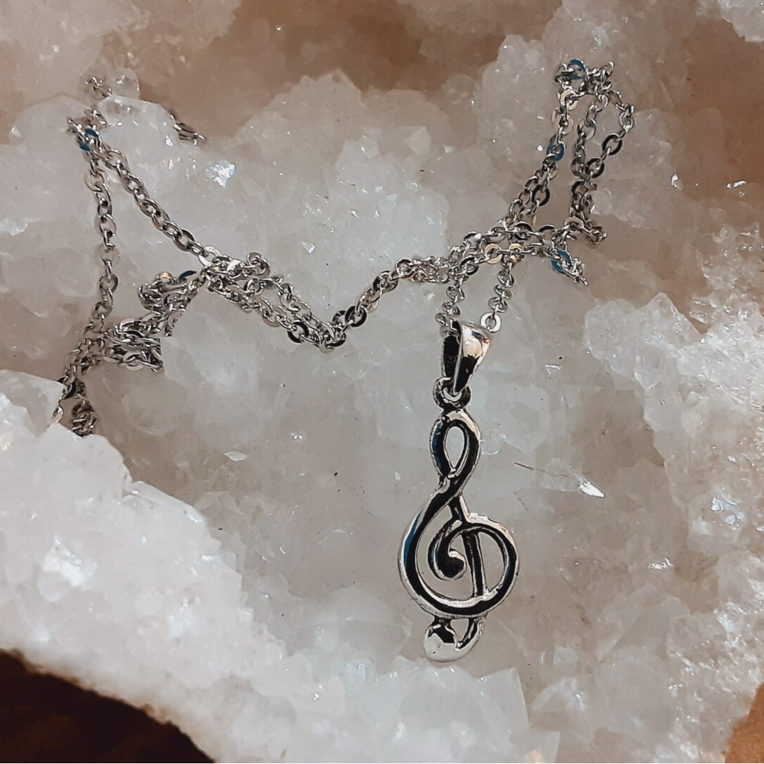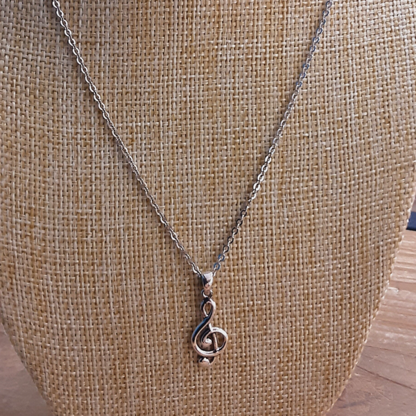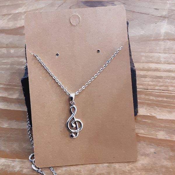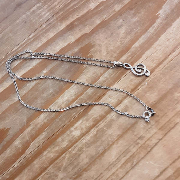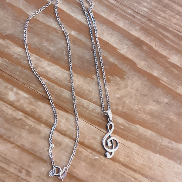 Collier ras de cou composé d'une pendentif clé de Sol en Argent 925/1000 et d'une chaîne de longueur 45 cm en Argent 925/1000.
