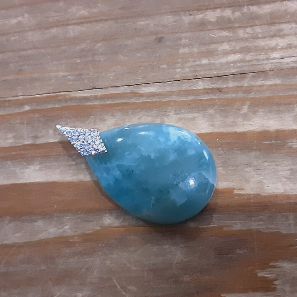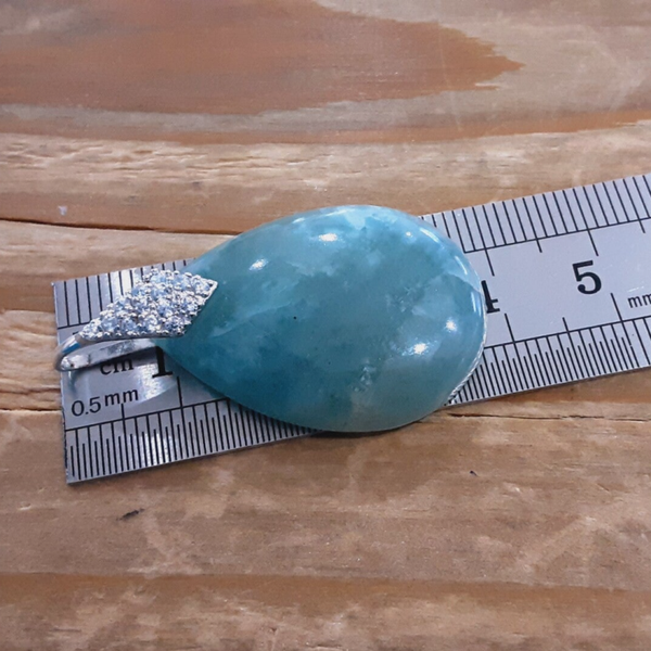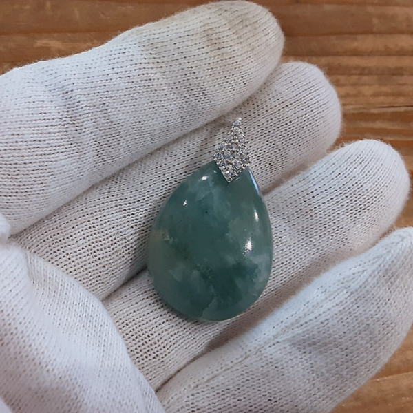 Pendentif en Aigue Marine et Argent 925/1000, composé d'un magnifique cabochon de forme goutte en Aigue Marine bleu/vert et d'une bélière en Argent 925/1000 ornée de Zirconium.