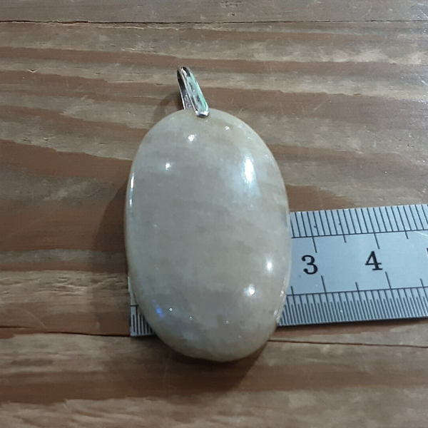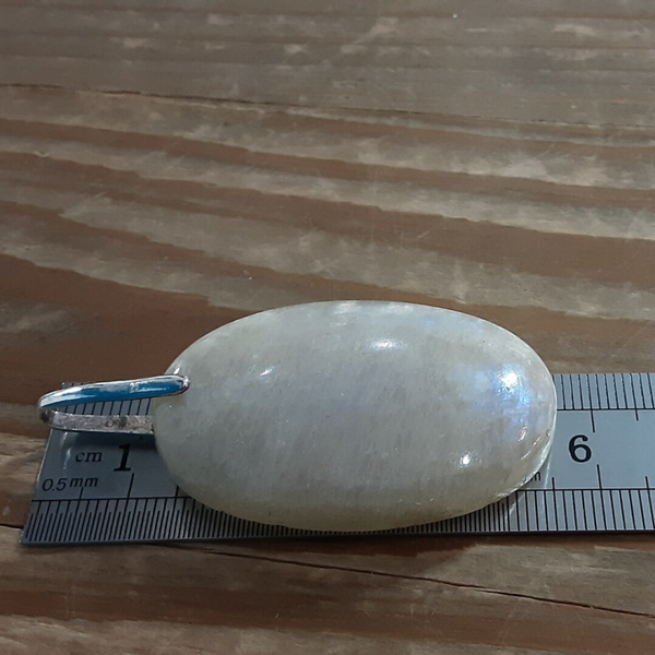 Pendentif en Pierre de lune et Argent 925/1000. il est composé d'un cabochon ovale de Pierre de Lune blanc nacré/bleu et d'une bélière en Argent 925/1000.