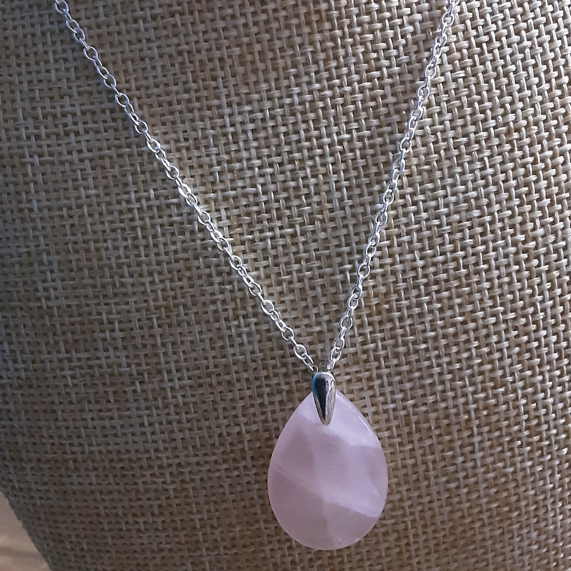 Collier ras de cou composé d'un cabochon de forme goutte en Quartz rose naturel, bélière et chaîne de 45 cm de longueur en Argent 925/1000.
