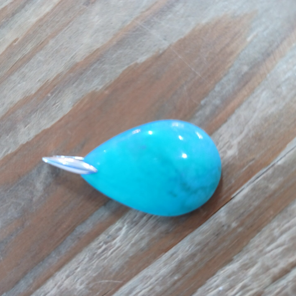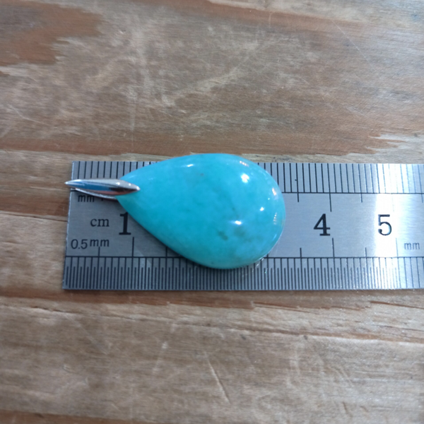Pendentif en Amazonite naturelle et Argent 925/1000, composé d'un cabochon de forme goutte en Amazonite vert clair et d'une bélière en Argent 925/1000.