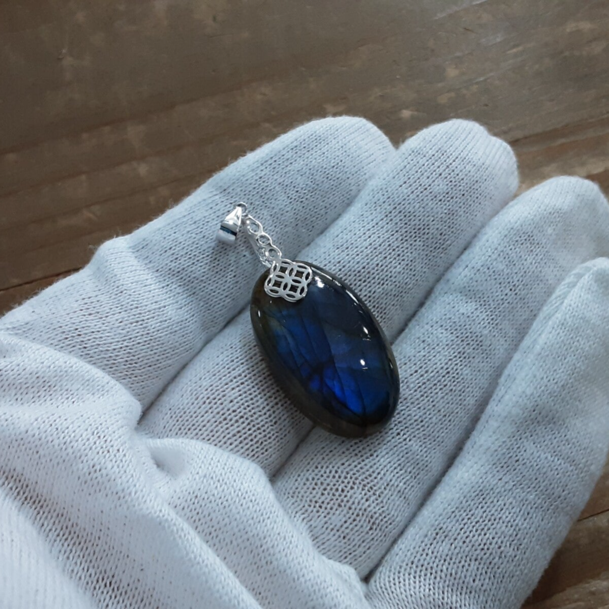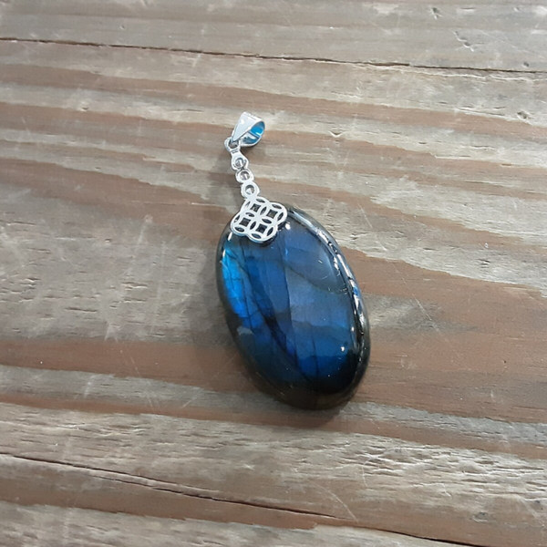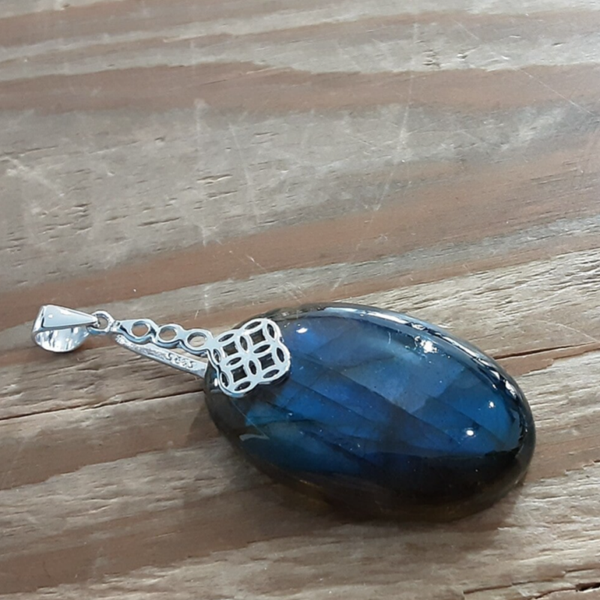Pendentif en Labradorite de couleur bleu intense, forme ovale, bélière en Argent 925/1000.