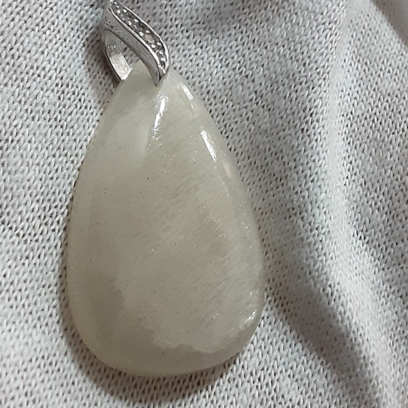 Pendentif en Pierre de Lune et Argent 925/1000. Il est composé d'un cabochon dee forme goutte en Pierre de LuneArc-en-ciel nacré/blanc/reflets bleus et bélière en Argent 925/1000 ornée de Zirconium.