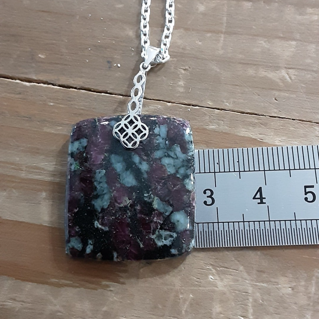 Pendentif en Eudialite, bélière en Argent 925/1000, chaîne solide de 45 cm en Argent 925/1000.