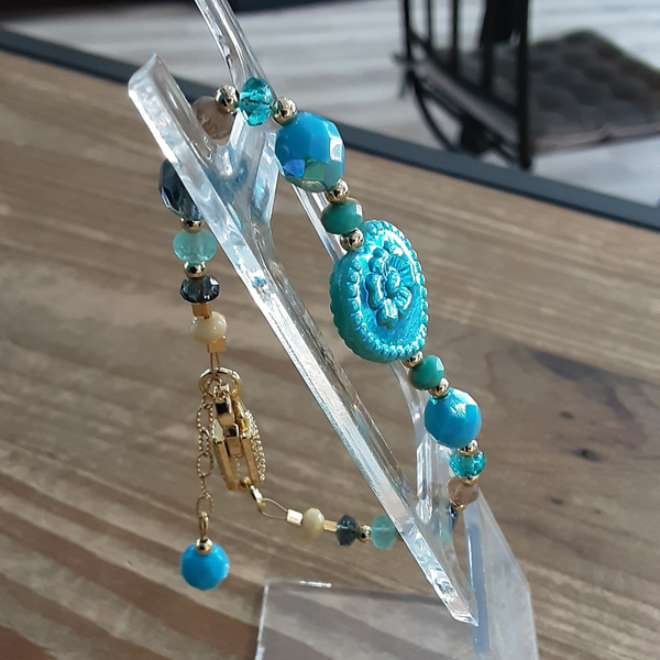 Bracelet ”Voyage” en verre Tchèque et Plaqué Or