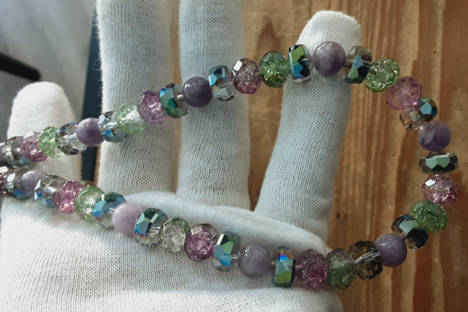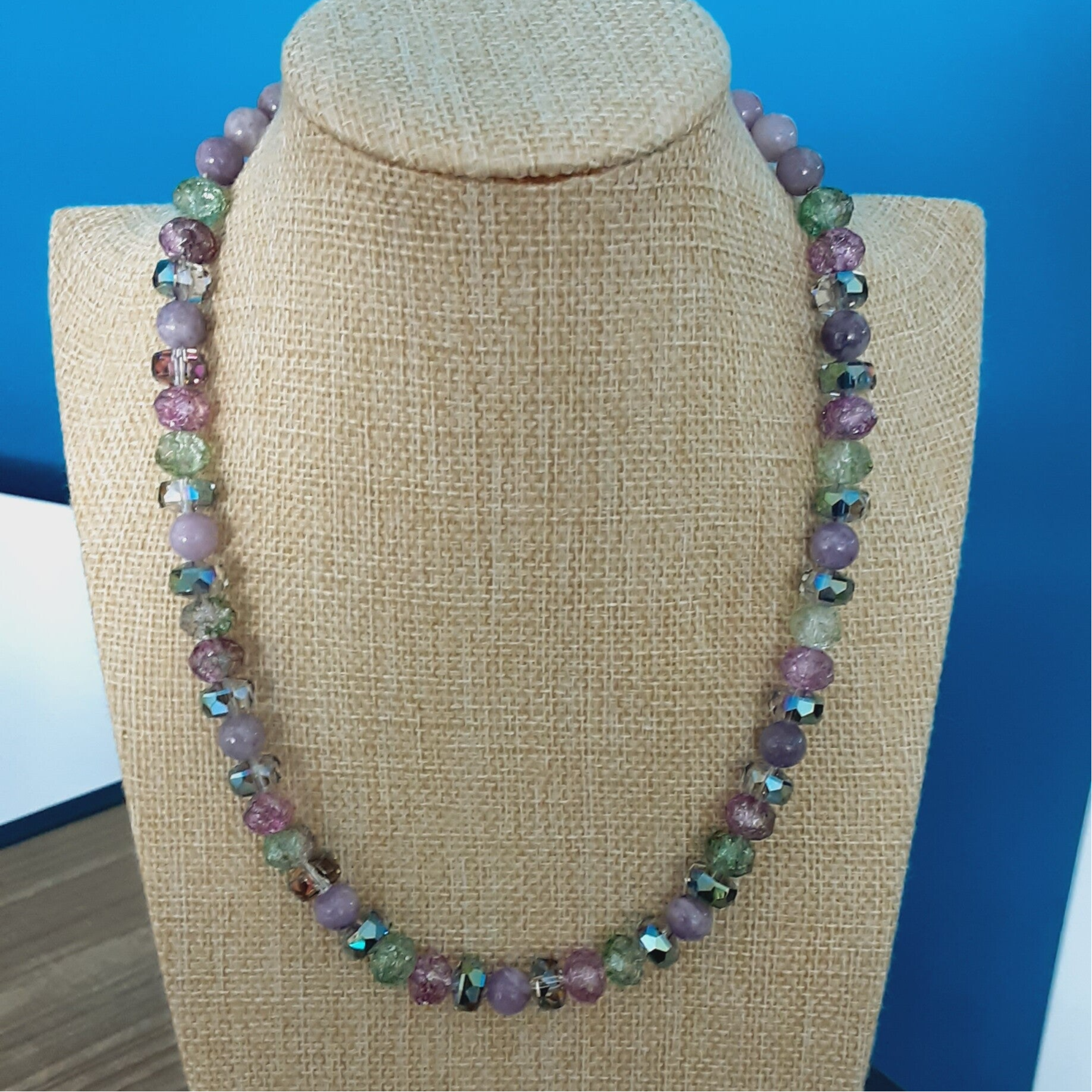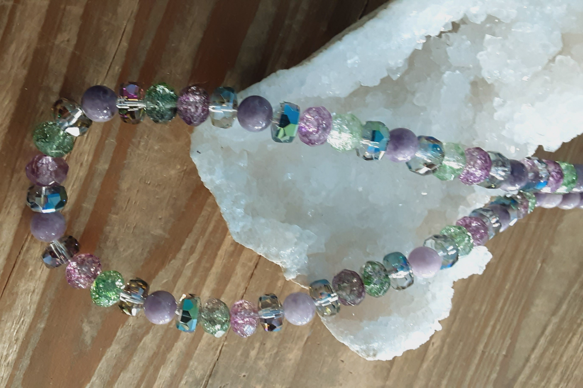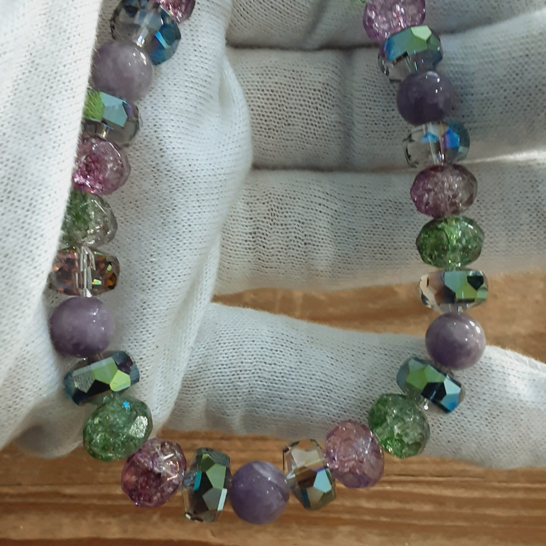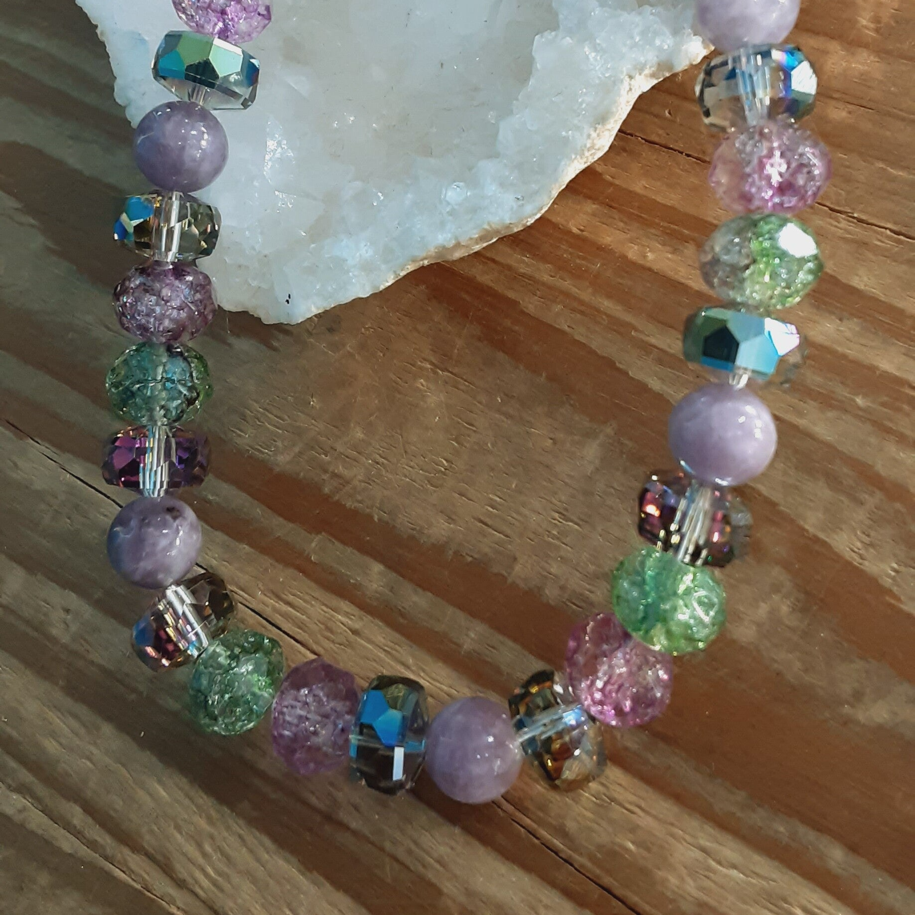 Collier "Flora" en Lépidolite, verre Tchèque & Cristal