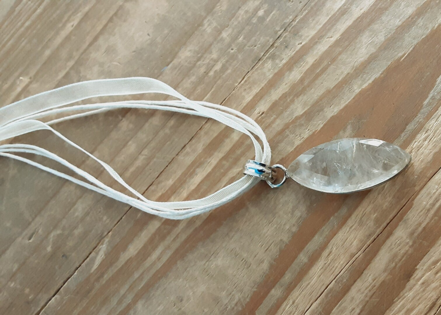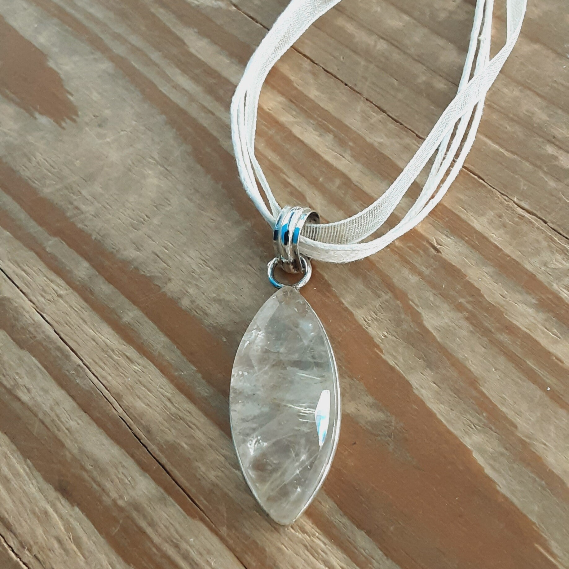 Pendentif en Quartz Rutile et cordon en Coton & Organza