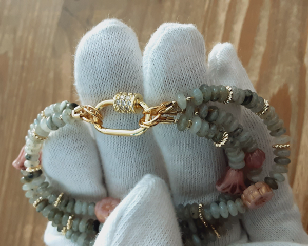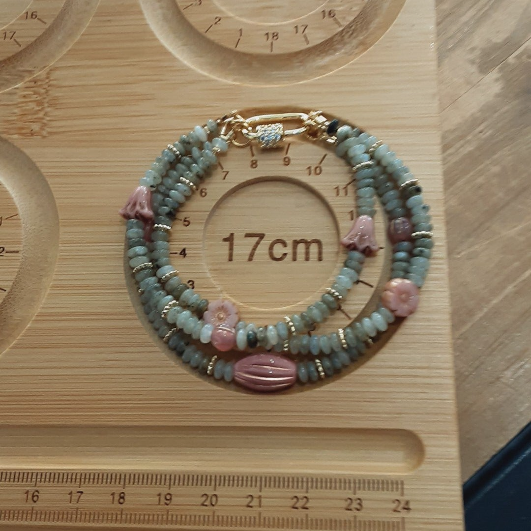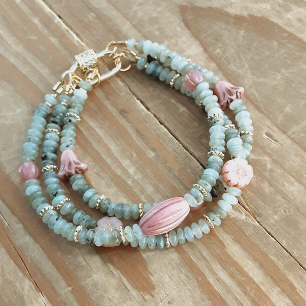 Bracelet "Zélina" multi rangs en Labradorite et perles de Verre Tchèque
