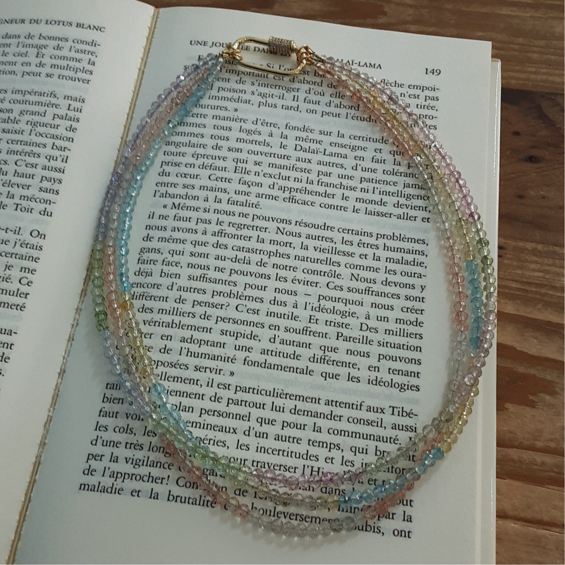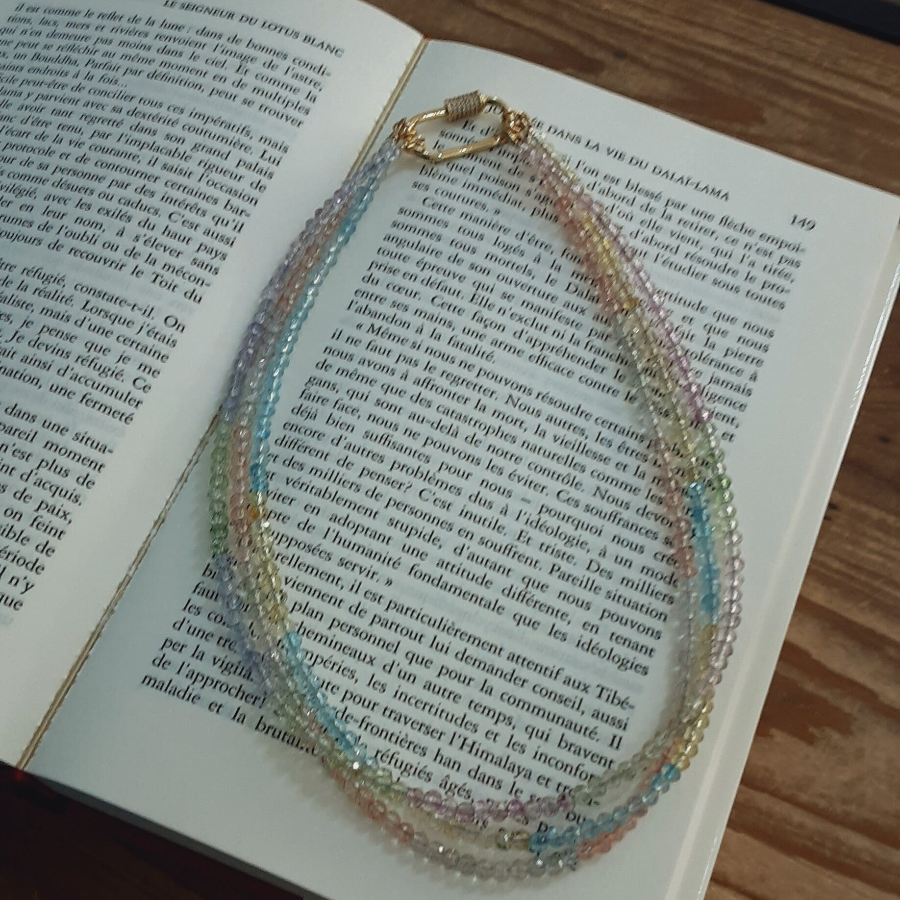 Il peut être porté de différentes manières ; en un, deux ou trois rangs comme présenté sur les photos.